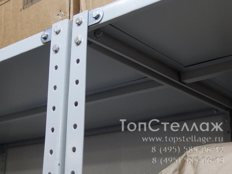 Комплектующие для легкосборных стеллажей выполнены из высокопрочной стали с порошковым покрытием RAL 7032.