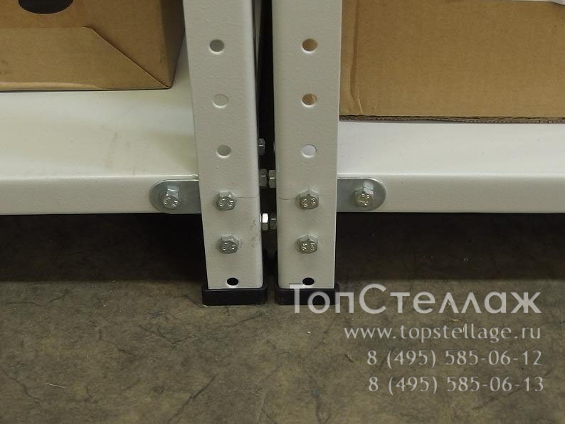 Стеллажи достаточно просто собираются в линии, при этом полки крепятся к стойкам с двух сторон.