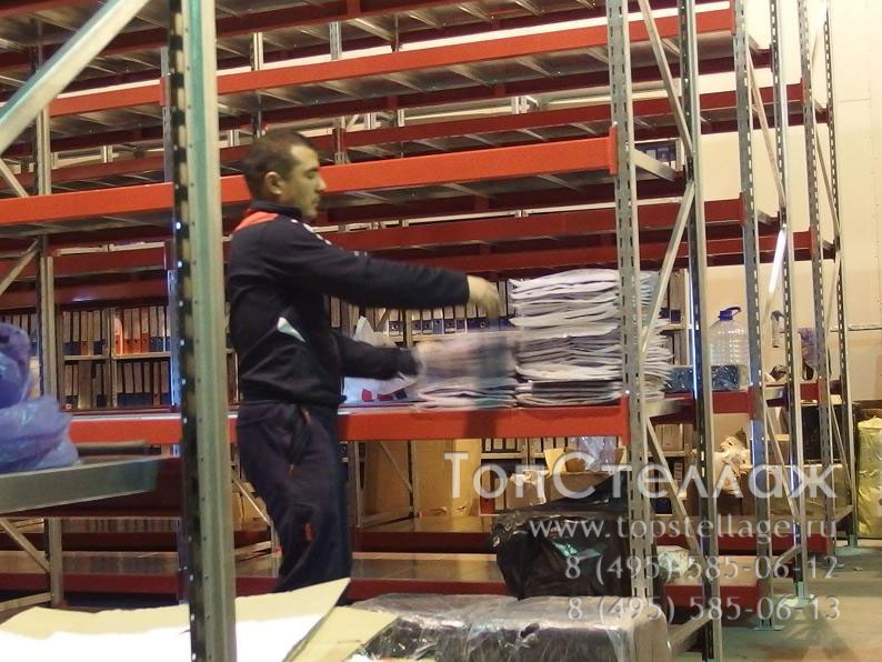 По сути это облегченный паллетный стеллаж с полками из оцинованной стали или более бюджетного варианта - ДСП. Стеллажи легко собираются в линию то есть балки можно вешать на раму с обеих сторон, что значительно удешевляет стоимость проекта.