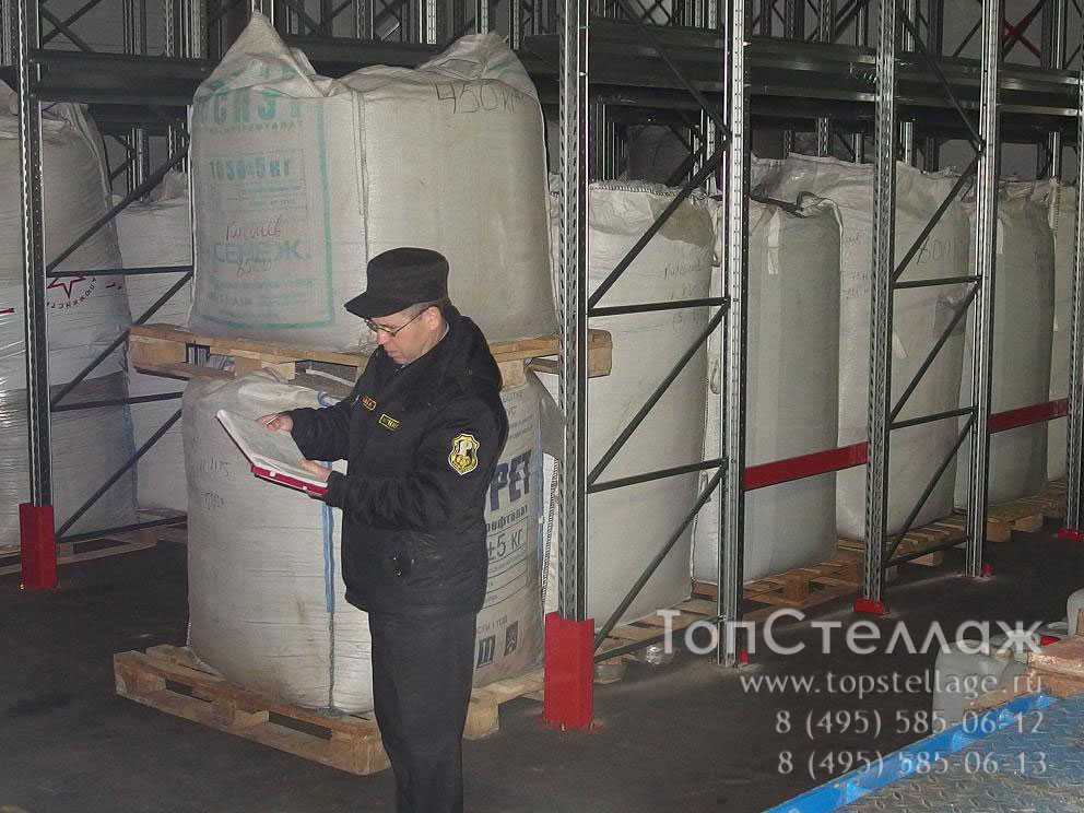 Данная система позволяет заполнить всю площадь склада, как будто бы поддоны стоят один на другом заполняя весь склад по высоте, ширине и глубине. Преимущество набивных стеллажей в том, что они не имеют проходов, как фронтальные паллетные стеллажи, что позволяет больше чем в два раза увеличить количество поддономест на той же площади склада.