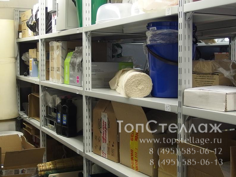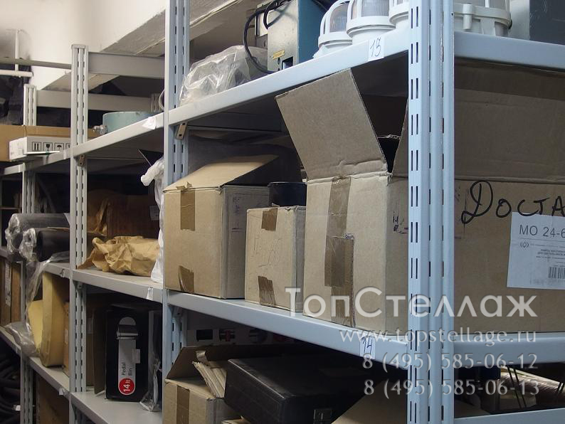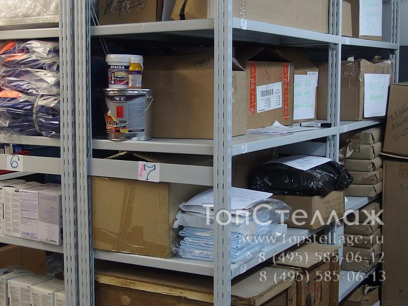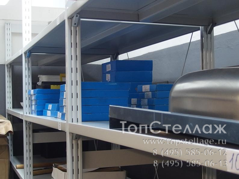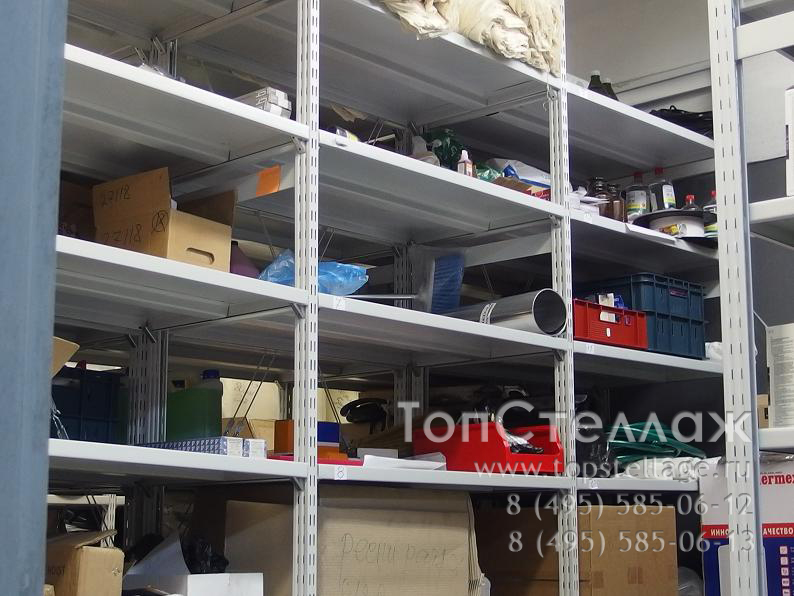 Стеллажи СУ используются для хранения большого количества документов и на складах для различного груза среднего веса. Эти стеллажи могут достигать высоты 4метра с шириной полок до 1,5м и глубиной до 0,8м. Преимуществом этого стеллажа является быстрота сборки и возможность легкой регулировки полок по высоте, так как полки крепятся к стойкам при помощи зацепов. Полка может выдерживать нагрузку до 300кг, весь стеллаж - 1500кг.