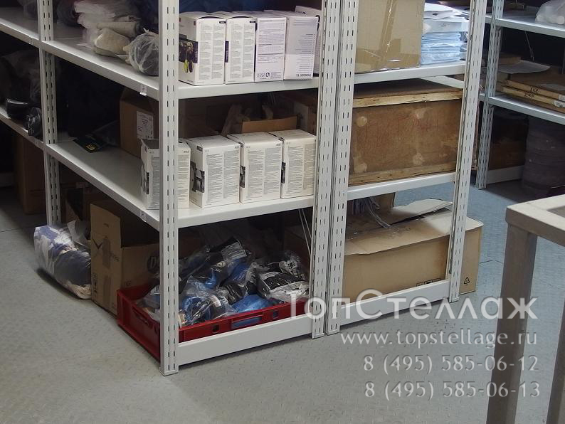Стеллажи могут быть укомплектованы любым количеством полок, а также дполнительными аксессуарами, например, папкодержателями или боковыми защитными сетками.
